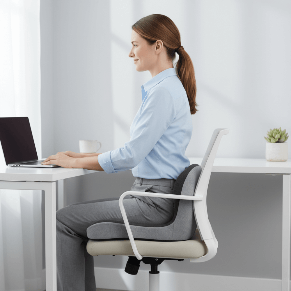 The U-shaped cutout gives the coccyx space, preventing all-day pressure on irritated nerves behind sciatica/tailbone pain.