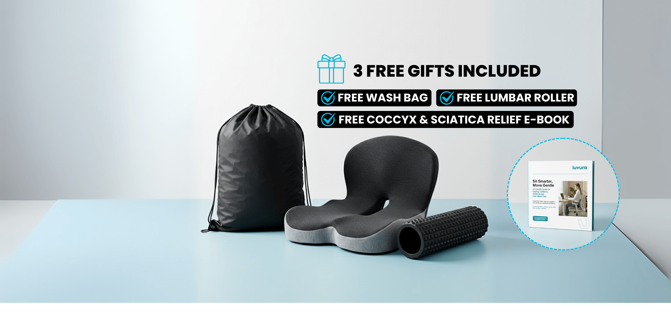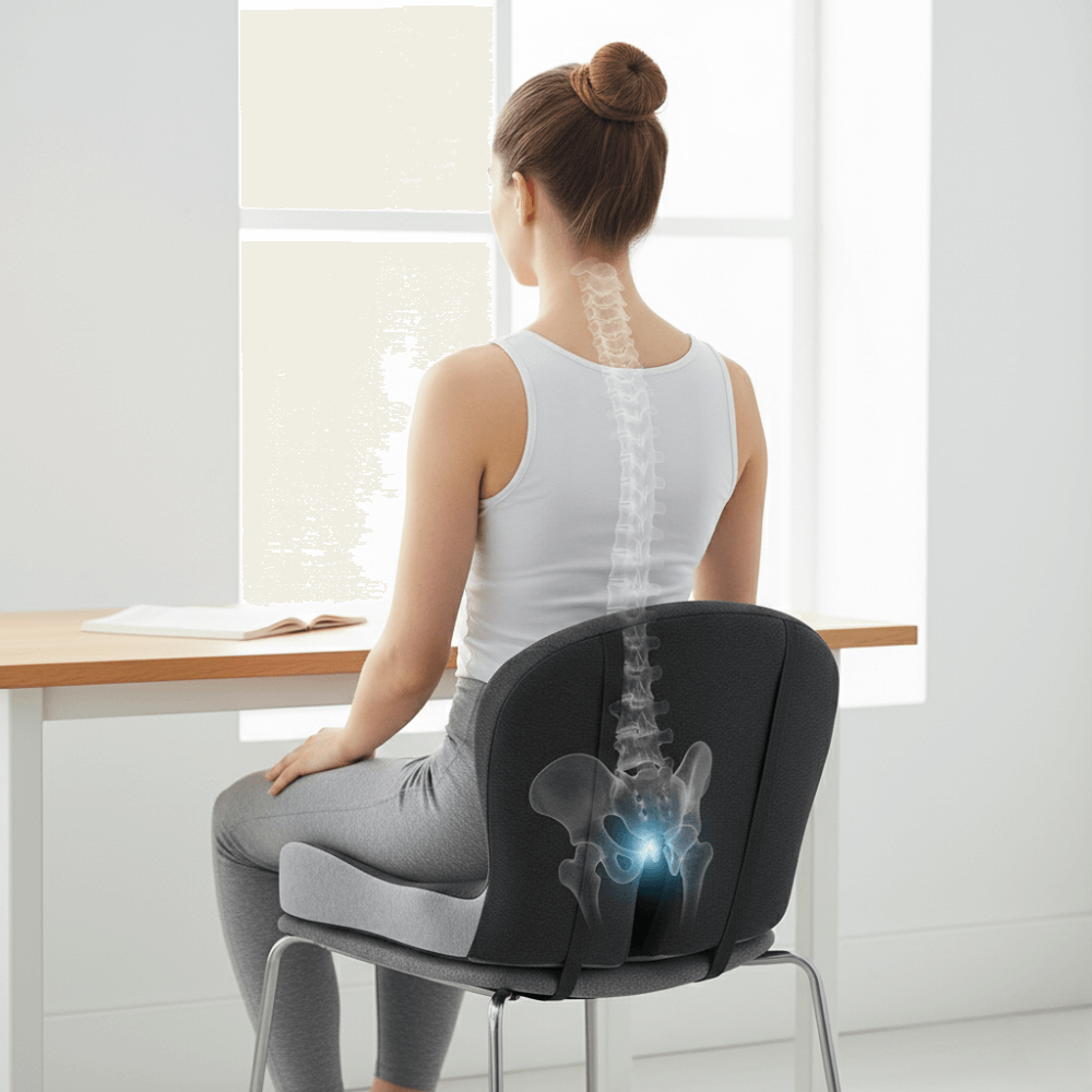 Typical seat cushions compress, slide, and keep pressure on the coccyx, so the ache returns. Ergonomic chairs may help posture but still load the tailbone and can't follow you wherever you sit.