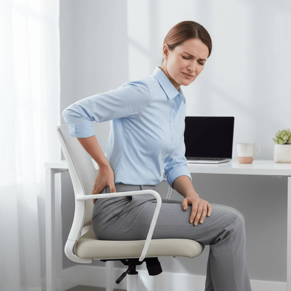 Sciatica and tailbone come from hours of pressure on the coccyx. Sitting for long periods tilt the pelvis back, loading the tailbone and irritating the sciatic nerve.