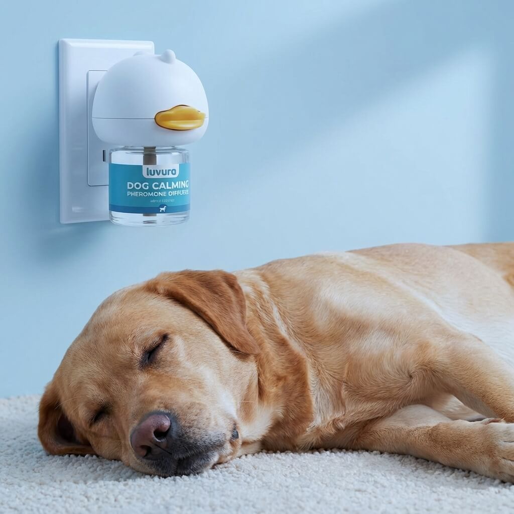 Luvura releases a continuous calming signal into your home. The biological message that tells your dog "you are safe" — even when every noise says otherwise.