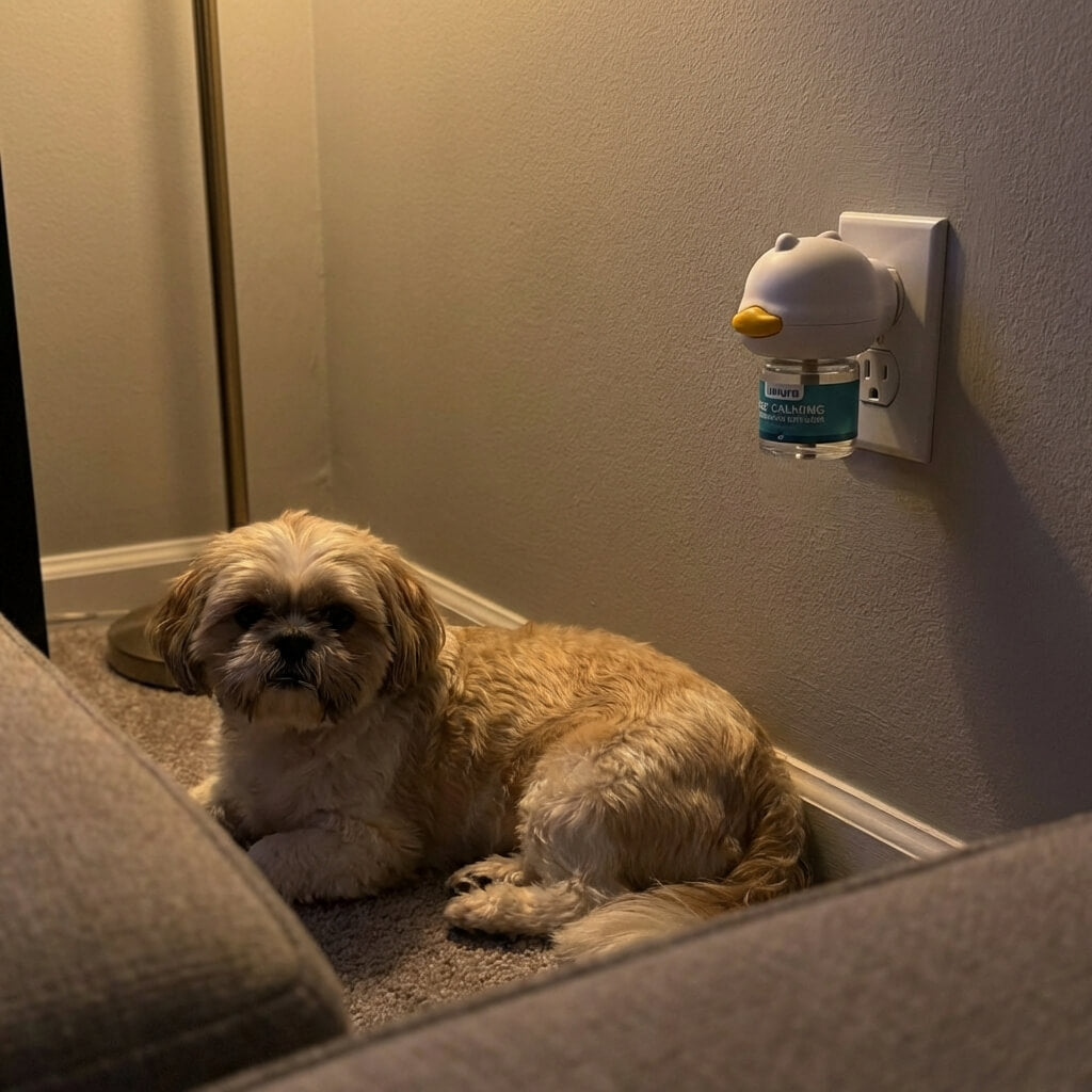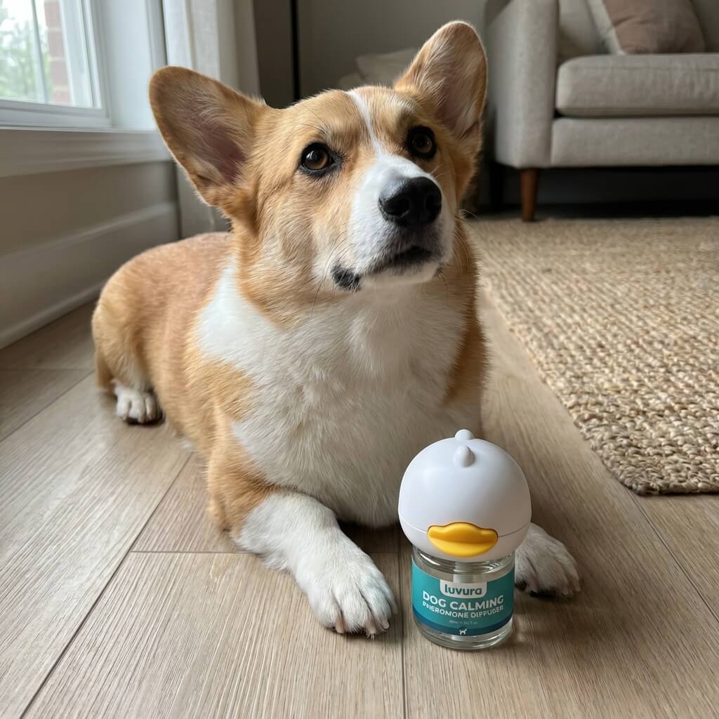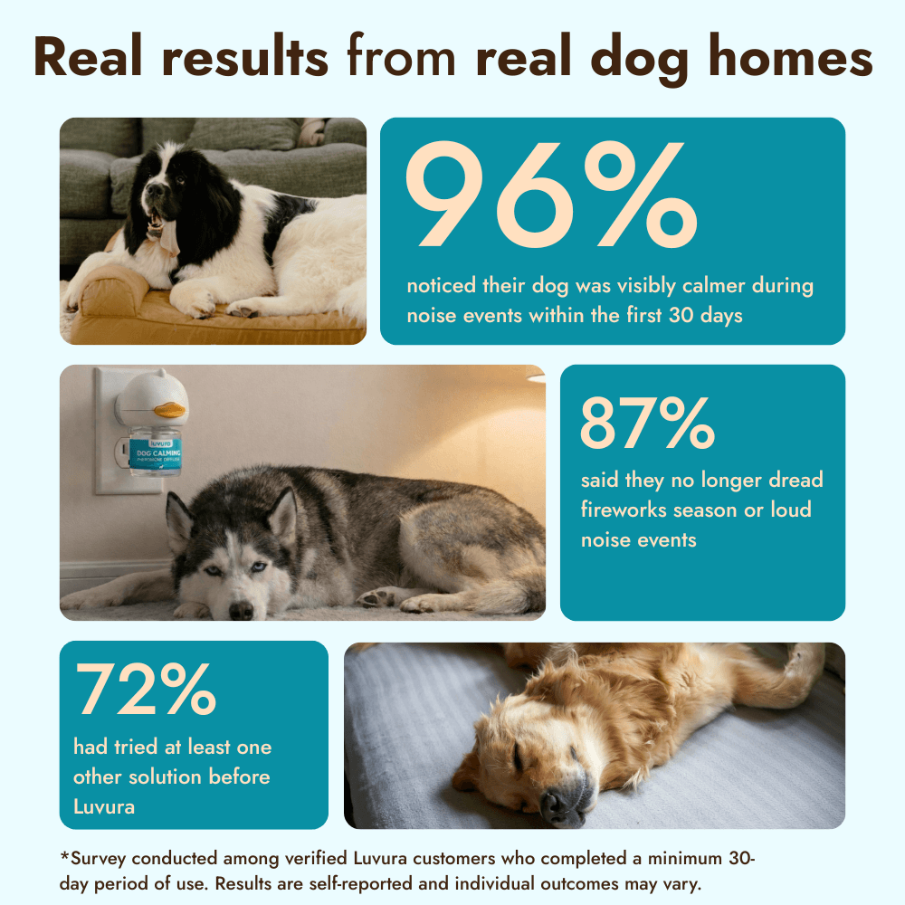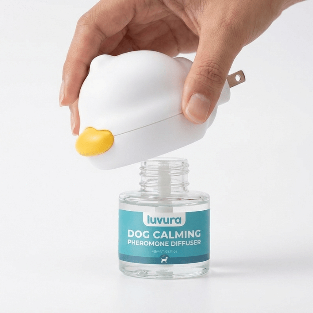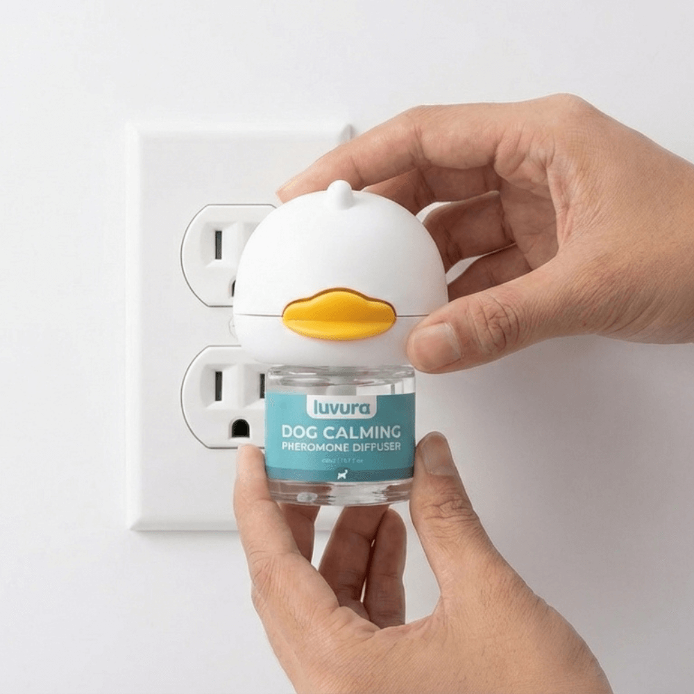 Luvura's Diffuser releases calming pheromones into your home 24/7 — working continuously in the background so your dog is already calmer before the next noise hits.