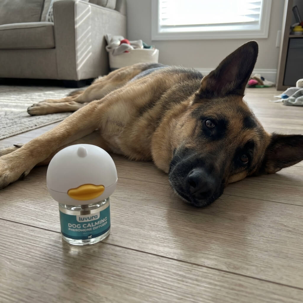 Luvura replicates the exact pheromone a mother dog releases to calm her puppies — the same signal that tells a dog the world is safe. Known as "DAP"